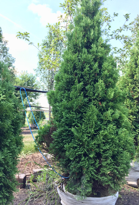 A standard arborvitae cultivar since 1951, this introduction out of Denmark is prized for its bright green scale-like foliage and pyramidal shape. It is a slower growing arborvitae, however it retains its color well through the winter if placed in a protected area. It can be tolerant of most soils, however it is at home in moist, well-draining soils and does not like being dry. Does best in a wind-protected site. Perfect for specimen planting, borders, or in rock gardens.