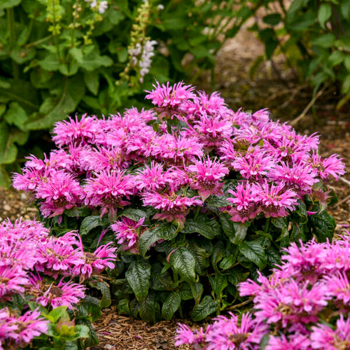 Bee balm is the perfect plant for attracting hummingbirds, butterflies, and other pollinators. 'Leading Lady Orchid' has clusters of orchid and light pink bicolor, tubular flowers that sit atop dark green, aromatic foliage. A dwarf, compact form of Monarda that has great powdery mildew resistant and excellent branching structure. Bee balms prefer average, moisture-retentive soils in full sun to part shade. Although powdery mildew resistant, plants do best with good air circulation.