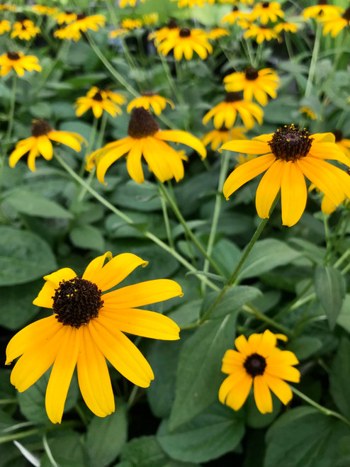Black-eyed Susans are one of the brightest and most cheerful perennials that you can grow in your landscape. Yellow disk flowers with black centers appear in June and bloom through to fall (with a little deadheading of course). The rough, sandpaper-like leaves are dark green and make the flowers seem even brighter. 'Goldsturm' is known for being an excellent cut flower and is one of the most popular perennials grown today. Black-eyed Susans grow best in average, well-drained soils in full sun but will tolerate clay, drought, urban conditions, dry soils, etc. Winner of the 1999 Perennial Plant of the Year.