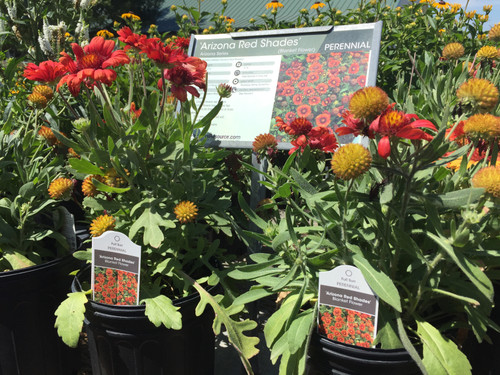 Blanket flowers are aptly named for their habit to blanket the ground with rich, colorful blooms from summer to autumn. 'Arizona Red Shades' was selected for its dark red disk flowers that attract butterflies and brighten the perennial border. Mounds of sage green leaves are hidden under the large blossoms and are often seen sprouting up in other places as the plant self seeds freely. Blanket flowers do best in average, well-drained soils in full sun and are quite tolerant of drought, dry soils, and other such conditions once established. Blanket flower may be best suited as an annual in some landscapes.