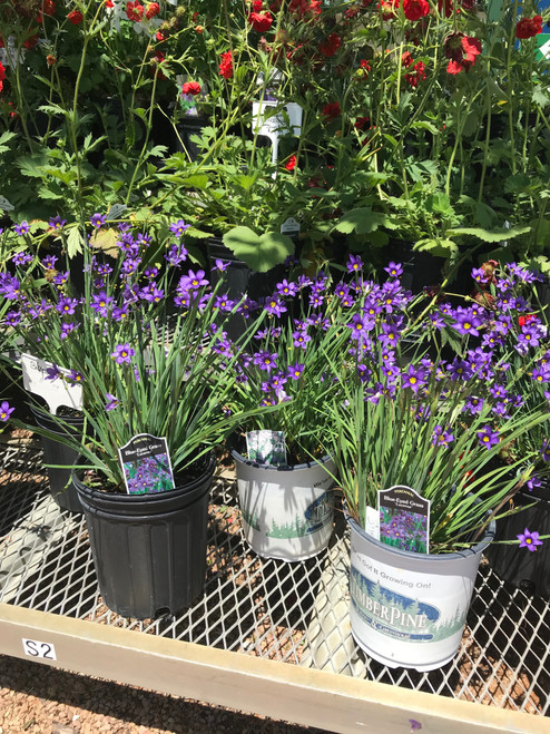 Blue-eyed grass is a beautiful clump forming perennial (actually not a grass at all) that makes an excellent specimen for the front-of-the-border. It is characterized by small, intense blue star-shaped flowers with yellow centers that are surrounded by thin, sword-shaped iris-like slender leaves. 'Lucerne' blooms profusely through spring and has larger flowers than the species. They prefer consistently moist, well-drained soils in full sun to part shade and will benefit from a good layer of mulch. They have no major insect or disease issues.