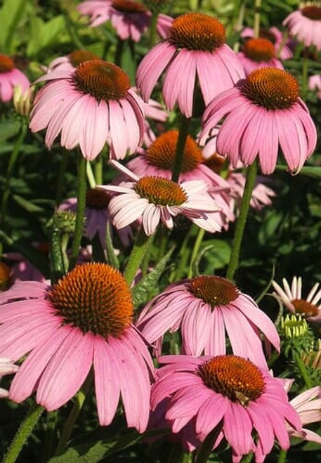Almost every Midwest gardener knows that summers would not be complete without one or more varieties of coneflower. They're extremely easy to care for: adaptable to most soil types provided it is well-drained, tolerant of drought, poor soils, heat and humidity, and can grow in either full sun or part shade. Coneflowers contain medium green, scabrous, oblong leaves with flowers in a multitude of colors that are arranged into rays of petals with a high cone in the center. Blooms make good cut or dried flowers for vases and are targets for butterflies and other pollinators. Plants are relatively disease, insect, and deer resistant apart from aster yellows disease. 'Magnus' is a taller cultivar with pink-purple flower heads with dark centers that bloom most of the summer provided they are deadheaded.