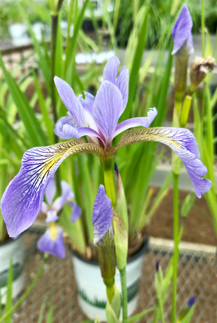 Blue flag iris is a water loving native that thrives in moist, boggy conditions. Lavender-blue blooms appear in June and the sword-like leaves often droop (which is uncharacteristic of traditional iris). This particular variety of blue flag iris grows better in neutral pH soils. They prefer moist to wet soils and can even be grown in water or on pond edges. They also make a good cut flower and are a great attractor of butterflies and other pollinators.