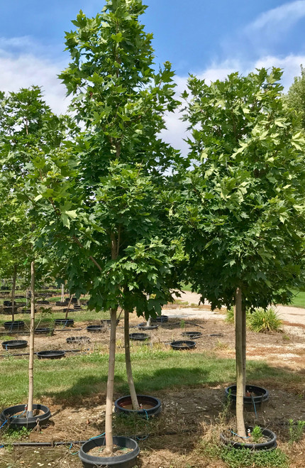 Sugar maples have one of the best fall colors when it comes to trees and are a beautiful mix of reds, yellows, and oranges. They are often characterized by a rounded, upright form which is covered in medium-green leaves throughout the growing season. These slower growing maples do best in full sun to part shade in well-drained soils. Sugar maples have no serious insect or disease problems, however they do not tolerate pollution or salts well. Legacy® was selected for its oval shape, bright orange-red fall color, and thicker leaves that are resistant to drought and tattering in the wind.