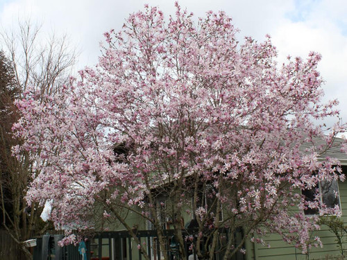 'Leonard Messel' is a compact cultivar with a multi-stemmed habit and beautiful two-toned flowers at an early age. The strap-like petals are similar to star magnolia, white on the inside and purplish-pink on the outside. The flowers are less susceptible than most magnolias to late frosts. 'Leonard Messel' is a cross of M. kobus and M. stellata 'Rosea'. Excellent for use as a spectacular large shrub or small multi-trunk specimen tree. Deciduous.