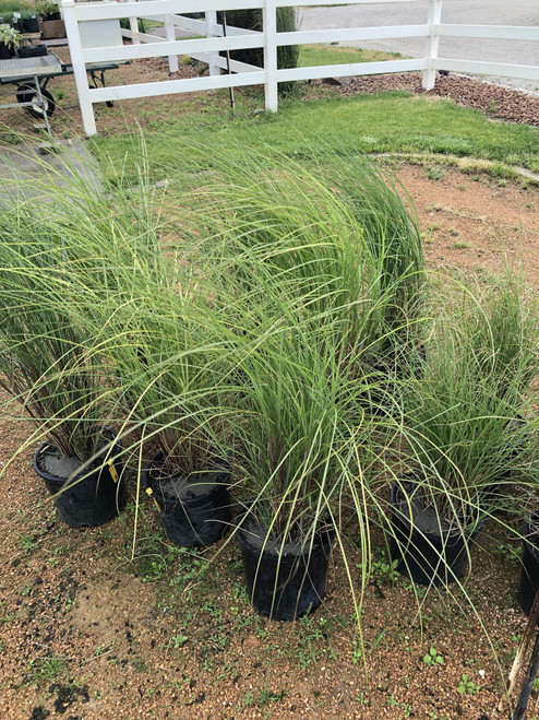 Maiden grass is a very fine textured and graceful grass that reaches large heights in the same growing year. Narrow blades are a deep green, often with a white line down the midrib, and the overall plant is clump forming. Elegant tassel-like blooms emerge in late summer and flower a copper color before turning silver by fall. If foliage is left in winter, it will add texture and interest to the winter landscape. Maiden grass is very tolerant of a wide range of soils but does best in more moist conditions. Yellow-orange to tan fall color.