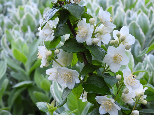 Illuminati Tower® has the mock orange attributes in a smaller size. The dark green foliage on each all four sides of the branch adds interesting foliage to your garden. The white flowers come out in late spring/early summer and are very fragrant, attracting butterflies and hummingbirds. The plant is also drought tolerant once it is established; and its small size means you can grow it just about anywhere. It thrives as a low hedge, specimen plant, container plant, as borders, and in the landscape, and is deer resistant.