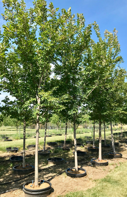 The hybrid elm TRIUMPH™ (bred at the Morton Arboretum) was primarily selected for its resistant to Dutch elm disease and other insect pests/diseases. It is a larger tree that is tolerant of alkaline and droughty soils, however it prefers average, well drained moist soils. Elms in general are prized for their ability to withstand various growing conditions (salts, clay, and drought), thus it does well as a street tree or a shade tree. Dark green leaves cover the canopy throughout the growing season before turning a golden yellow in autumn. Its vase shaped architecture adds a unique form to landscapes through all seasons.
