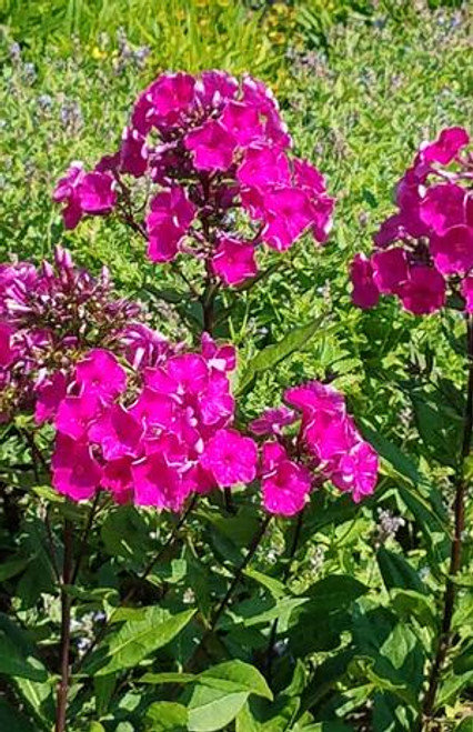 Garden phlox is a staple in late summer perennial gardens and perfect for cutting, wildlife, and xeriscaping. Typically, garden phlox has brightly colored panicles of star-like flowers that sit atop tall stems above medium green, oblong foliage. Plants do best in rich, medium moisture, well-drained soils in full sun, but can tolerate part shade as well. They will also benefit from a layer of mulch to help keep root systems cool and deadhead as needed for continual bloom through the summer. Garden phlox is notorious for getting powdery mildew if plants are planted too close together or if they get a lot of overhead watering - take care to avoid these conditions. 'Super Ka-Pow Fuschia' has robust and fragrant blooms, along with excellent powdery mildew resistance and cold hardiness.
