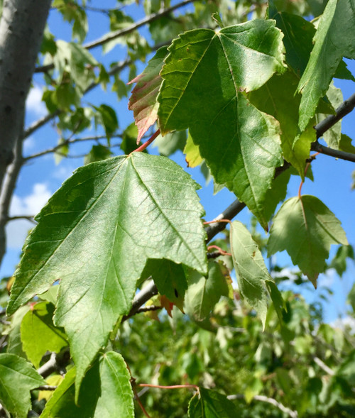 Red maples are often characterized by their red, well, everything. Flowers, fruit, buds, leafstalks, twigs, and even their new growth are tinged red and the fall color especially is outstanding. Red maples grow well in almost any soil type, provided they are in full sun or part shade, and tolerate wet soils fairly well. They are covered in medium green, trilobed leaves throughout the growing season and have red, inconspicuous flowers that emerge before leafing out in late winter/early spring. Red Sunset® has stunning red/orange autumnal color and is considered one of the best red maples on the market. Selected as the 2000 Iowa Tree of the Year by the Iowa Nursery and Landscape Association.