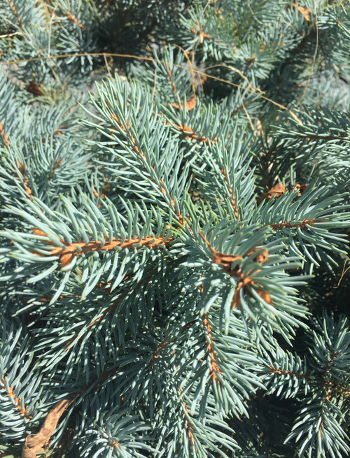 Colorado blue spruce are sought after trees/shrubs due in part because of their blue hue and winter interest. This Rocky Mountain native is recognized by its stiff, short silver-blue needles that surround the branches. Blue spruce prefer acidic, well-drained soils in full sun, however they will tolerate periods of drought and some light shade if good growing conditions are met. They will do best if soils are allowed to be consistently moist, provided water drains freely. Cooler climates often produce bluer needles. 'Globosa' is a grafted blue spruce with intense blue-silver needles year round and a short, rounded form that flattens out at the top.